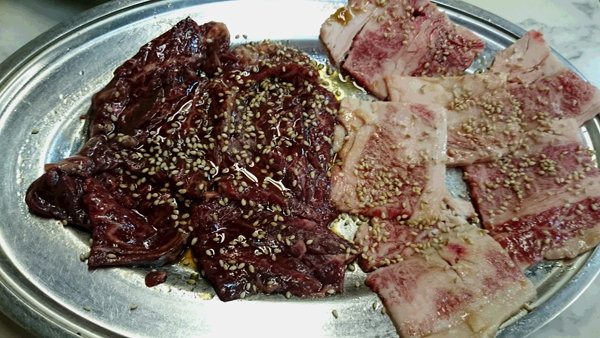 ハラミ(左)、カルビ(右)