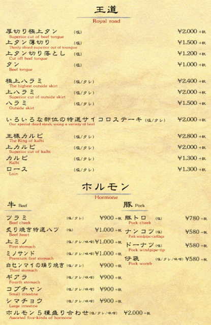 こないだ「焼肉 稲田」と言う店に行った。