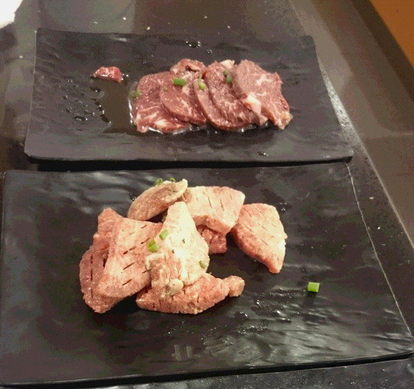 肉、チャプチェ、海鮮チヂミ、カルビタンを