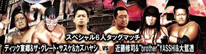 カズ・ハヤシ&ザ・グレート・サスケ(みちのくプロレス)&ディック東郷vs近藤修司&“brother”YASSHI&大鷲透