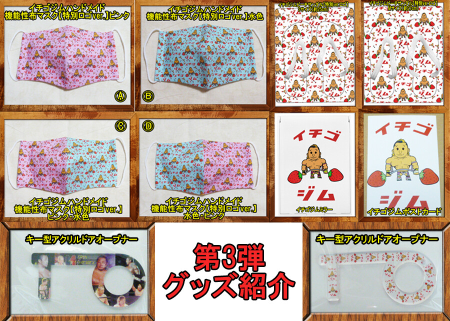 ⑥イチゴジムハンドメイド機能性布マスク・・・残りA3枚、B3枚、C1枚、D1枚その後入荷なし